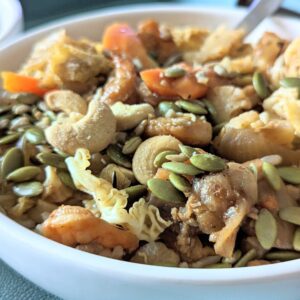 Squeeze a wedge of lime and garnish with pumpkin seeds.