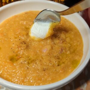 This fall soup is a velvety and comforting blend of hearty yellow split peas, sweet butternut squash, and delightfully salty smoked ham. Creamy and satisfying, not only does this earthy combination showcase warm fall colours but it also becomes a delicious easy one pot meal for those chilly nights.