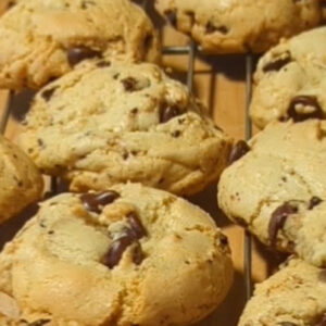 Use a small ice cream scoop or a tablespoon to scoop spoonfuls of dough (about 2 tablespoons) and shape them into a ball. Place a couple of extra chocolate chips on top (optional). Place on prepared baking trays.